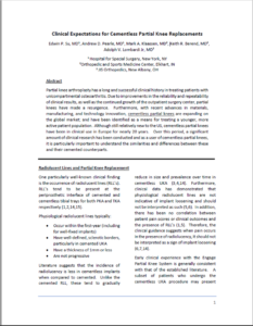 Abstract: Partial knee arthroplasty has a long and successful clinical history in treating patients with unicompartmental osteoarthritis. Due to improvements in the reliability and repeatability of clinical results, as well as the continued growth of the outpatient surgery center, partial knees have made a resurgence.