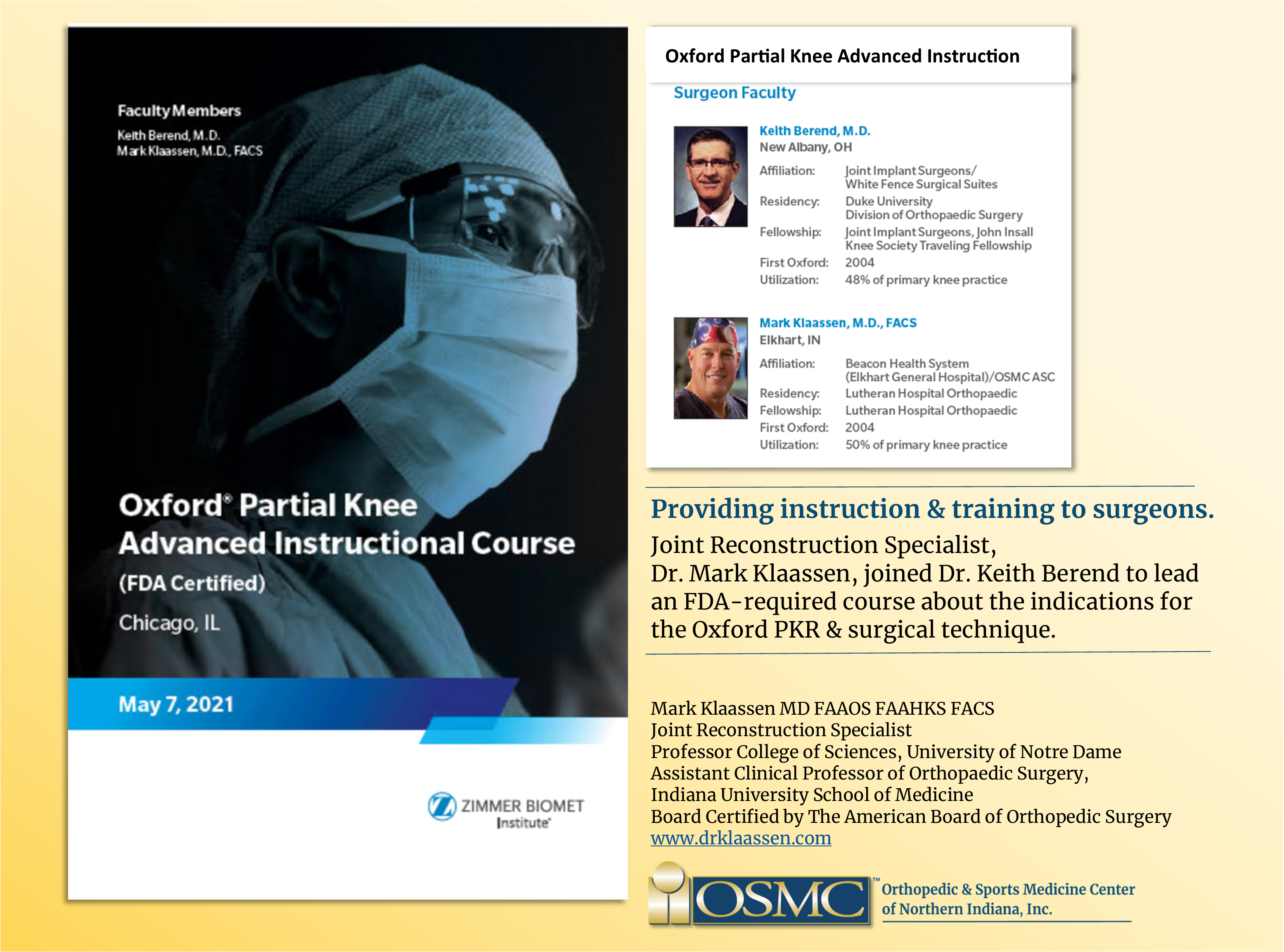 Oxford Advanced Partial Knee instructional course FDA required. Nashville TN, September 2022